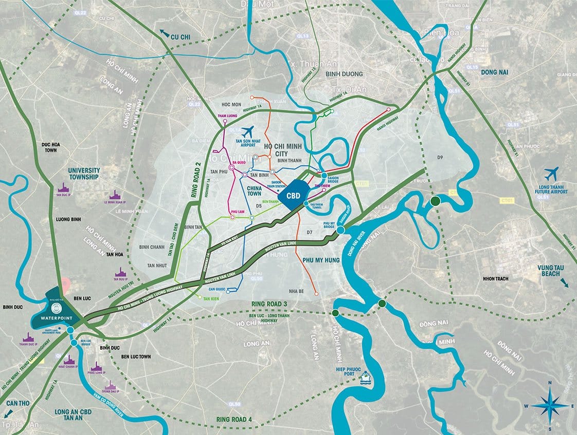 - Vị trí: Nằm bên dòng sông Vàm Cỏ Đông, trung tâm Khu đô thị Waterpoint, vòng xoay DT 830, Bến Lức, Long An.