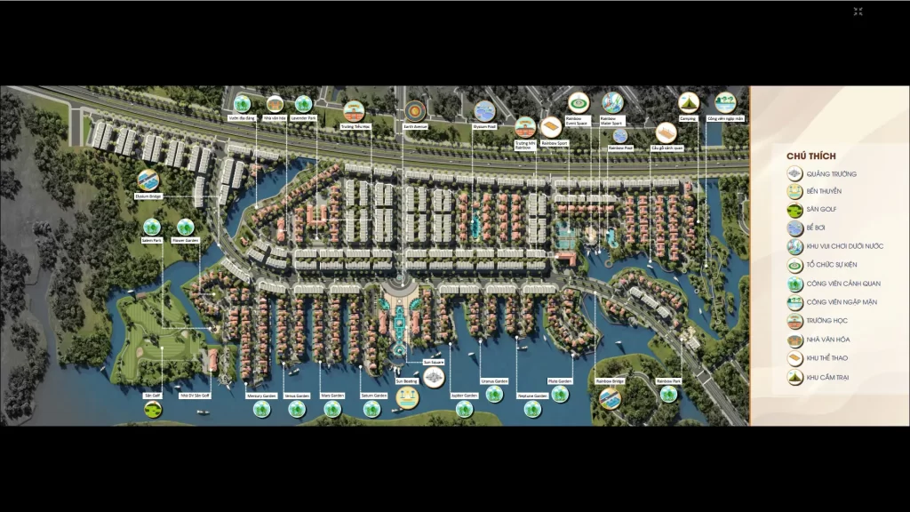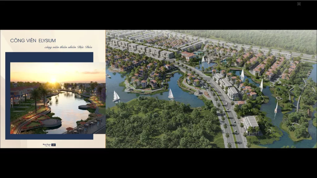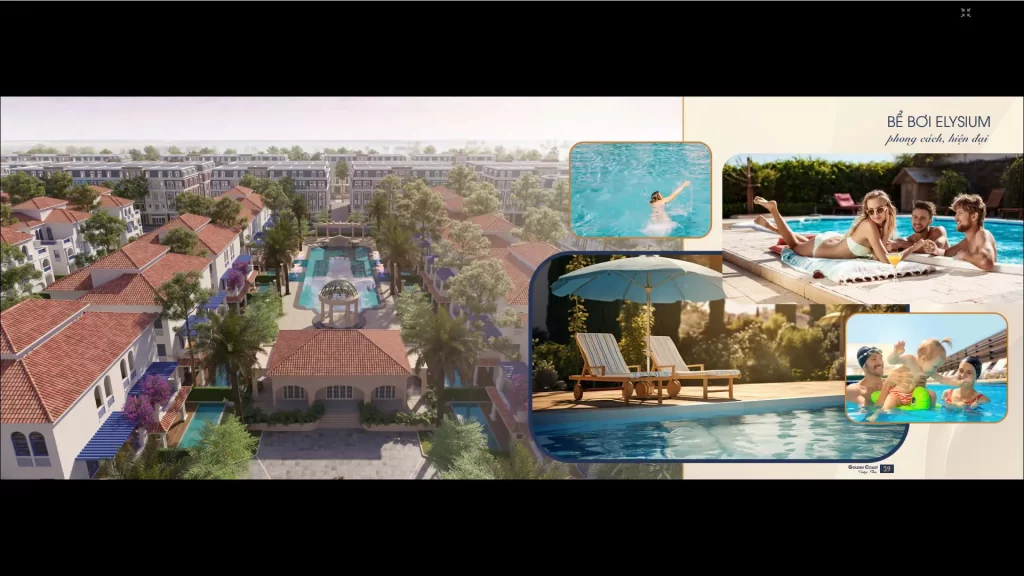 - Cùng hàng loạt tiện ích chuẩn 5 sao: Bể bơi cao cấp Elysium, Công viên cảnh quan & công viên ngập mặn, Khu cắm trại Camping – Fishing – Walking, Clubhouse
